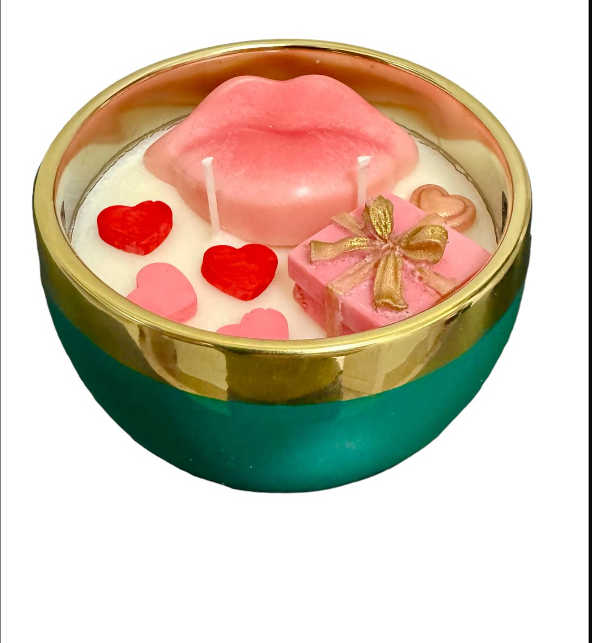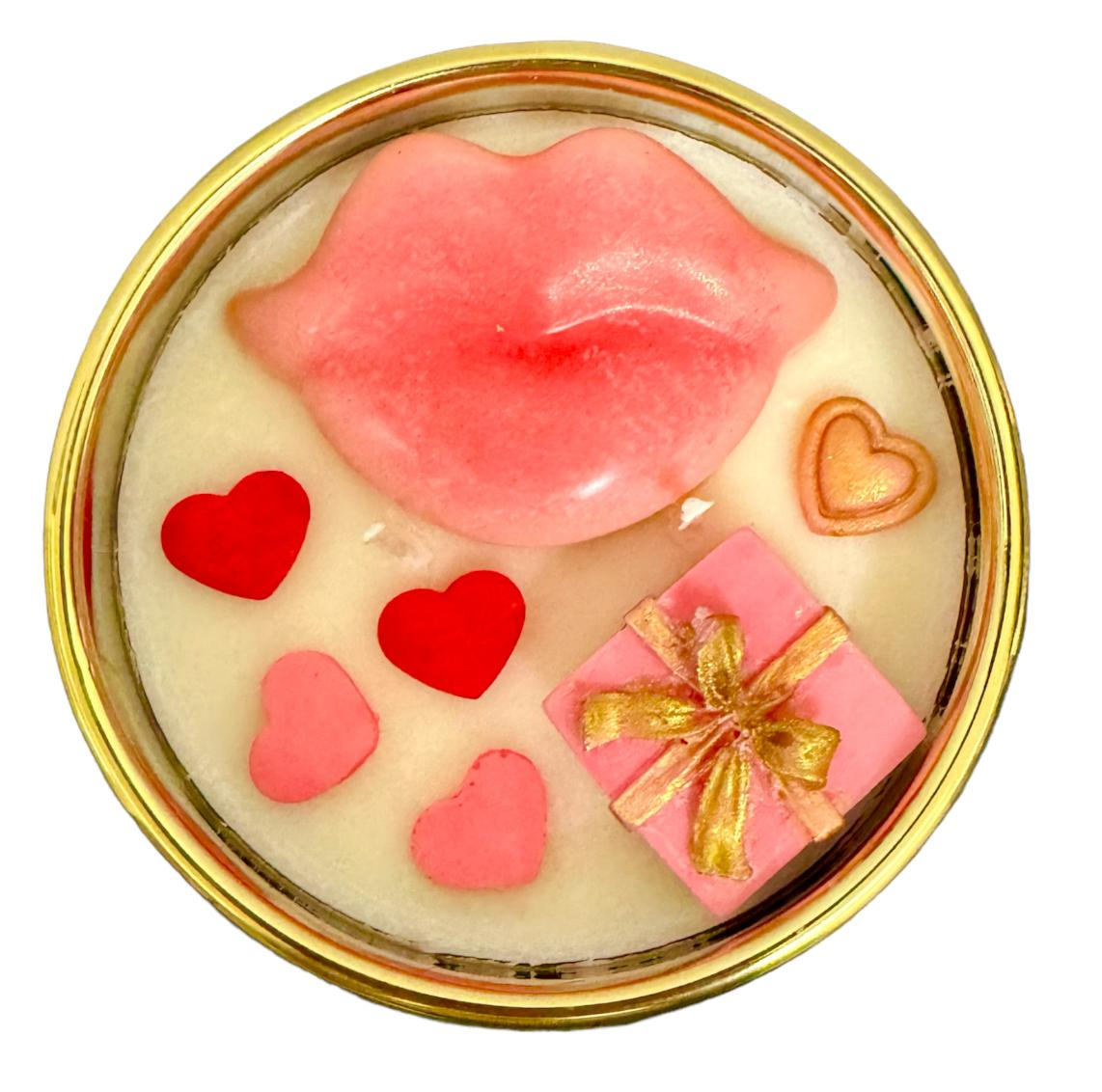 Lumanare parfumata Hand made cu buze si inimioare H9xD11cm