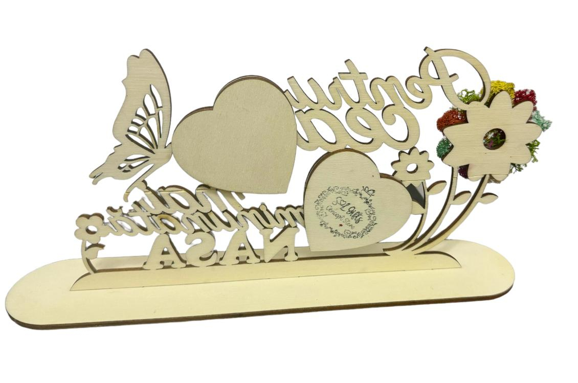 Decoratiune din lemn "Cea mai buna nasa" cu licheni stabilizati