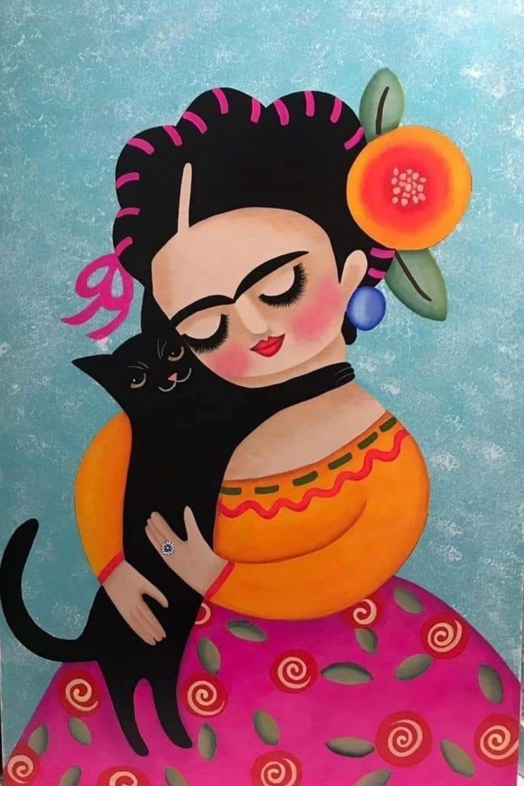 Magnet / Martisor Fata cu pisoi 10 x 7 cm