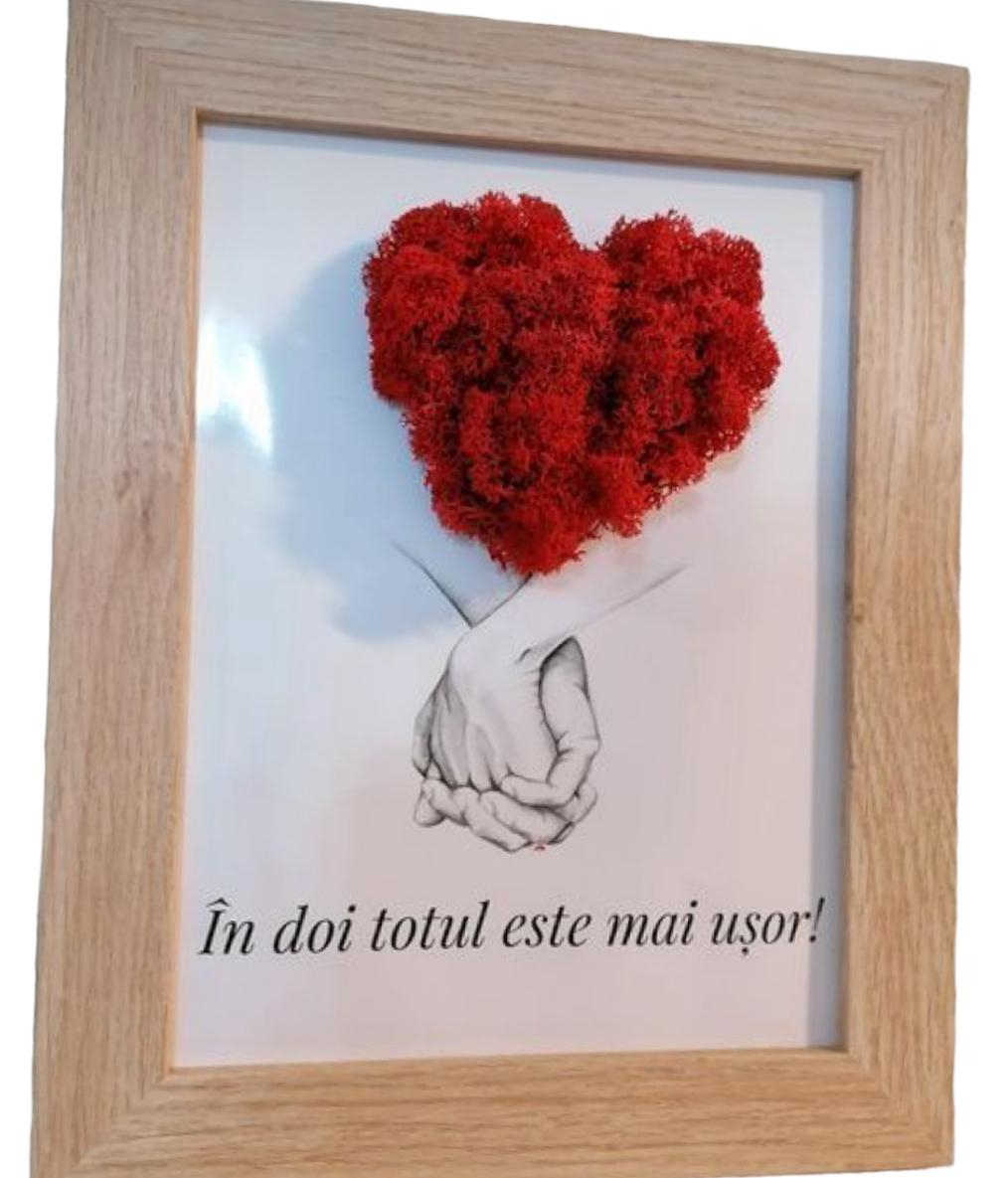 | Alege sa oferi un cadou deosebit pentru ocazia speciala: Rama "Holding Hands" si inima din licheni. Dimensiune A4 210 x 297 mm *Culoarea ramei poate sa varieze in fucntie de stoc, pastrand dimensiuniile mentionate *Culoarea licheniilor pot sa varieze in functie de stoc. |