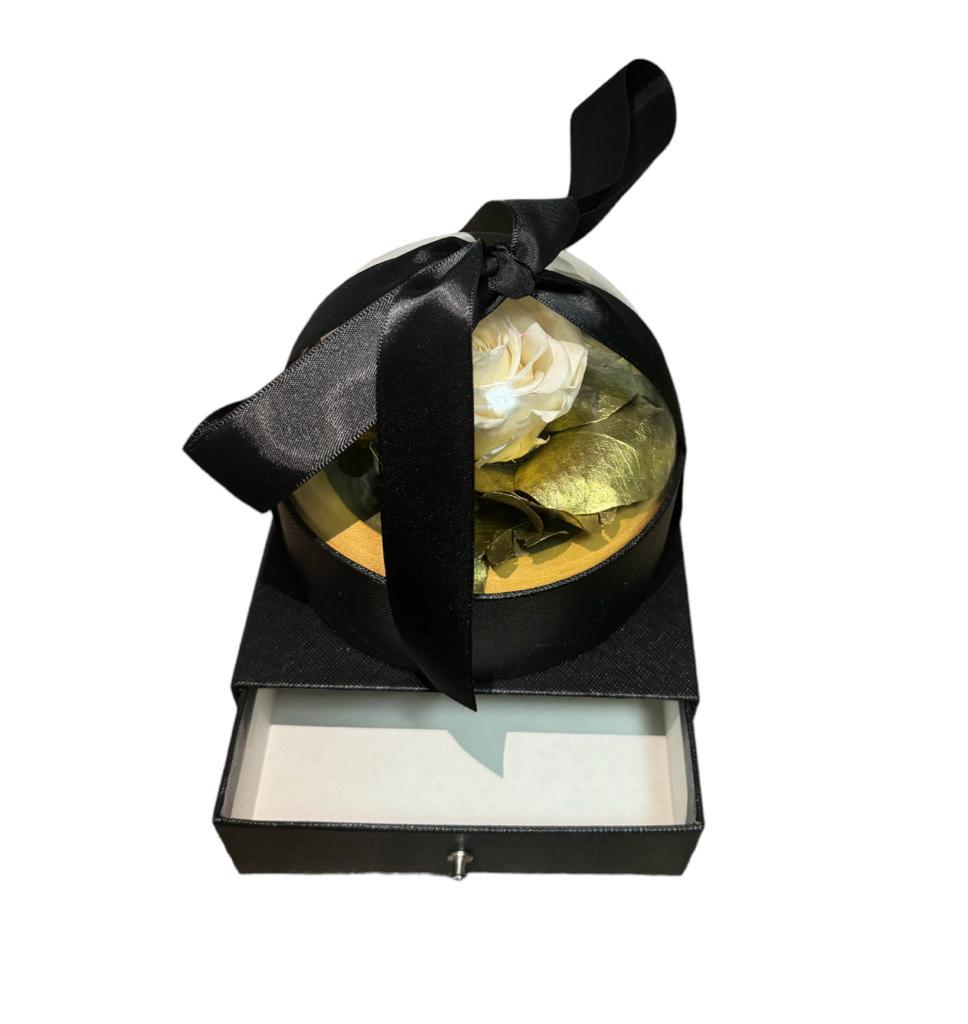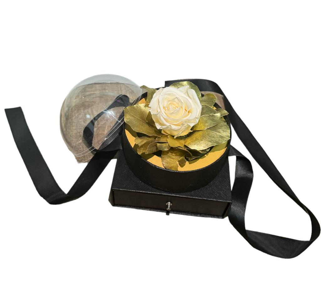 Trandafir criogenat in cutie eleganta + sertar pentru bijuterie/cadou surpriza.