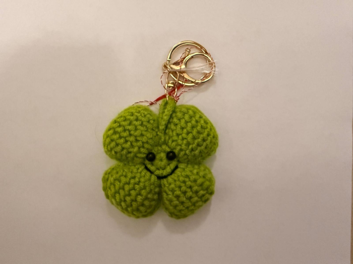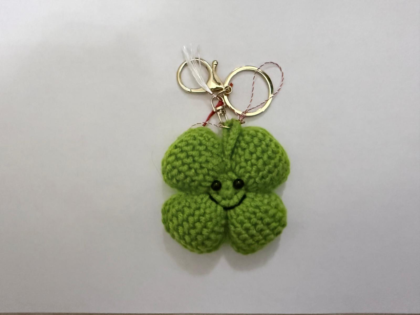 Poartă primăvara la cheie cu acest breloc adorabil, croșetat manual în forma unui trifoi cu patru foi – simbolul norocului, al bucuriei și al începuturilor senine.